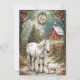 Weihnachtsgrüße für Ihre Lieben, Familie und andere auf dem Land. Die Illustration zeigt eine idyllische rote Scheune, eine Farmszene, die von der Ruhe des ländlichen Lebens inspiriert ist, insbesondere ein klassischer Weihnachtsmoment auf dem Land für Pferdeliebhaber und rustikale Landherzen. Sie ist von der Weihnachtskrippe und dem Charme des Landes inspiriert. Die Rückseite enthält ein Zitat "Wo der Stall einst den Erlöser hielt, möge jede Scheune sein Licht in Erinnerung behalten" und warme Wünsche, die personalisiert werden können. Perfekt für nostalgische Weihnachtsgrüße.