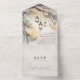 Rustikale Baumhirnleuchten, die alle in einer Einladung hochheiraten. Schönes elegantes Hochzeitsdesign in Aquarellfarbe mit rustikalen Botanischen Hängeblattern. Dieses maßgeschneiderte, moderne Hochzeitsdesign kann leicht mit Ihren eigenen Hochzeitsdetails personalisiert werden.