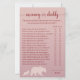 Mit dieser Spielkarte von Mommy oder Daddy können Sie sich mit Spaß und Lachen in Ihrer Woodland Babydusche fühlen! Die Gäste werden erraten, wer eher bestimmte elterliche Aufgaben erledigt - Mama oder Papa - und damit zu einer spielerischen und interaktiven Aktivität für alle wird. Diese rustikale Spielkarte mit einem süßen Mama- und Babybär auf einem rot-rosa Hintergrund ist ideal, um die Eltern zu feiern, während die behaltend Gäste unterhalten werden.