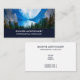 Eine Visitenkarte mit einem schönen Foto einer angenehmen und ruhigen Naturlandschaft. Lebhafter grüner Wald im Vordergrund und schattige blaue Berge im Hintergrund. Mit einem traumhaft bewölkten weißen Himmel. Ideal für Berufe in der Umwelt und im Freien.