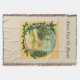 Ein Vintages rustikales Bild; eine kreisförmige Vignette mit Bergen und Schneebäumen in den Ästen, umgeben von einem Blumenmotiv. Fügen Sie Ihren eigenen Text hinzu.
