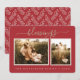Rustikale Weihnachtskarte mit dem Textsegeln in subtilem goldfarbenem Glitzer und elegantem Drehbuch auf einem warmen roten Hintergrund. Die Rückseite der Karte hat ein festliches Beeren-Gewirr-Muster. Fügen Sie einfach Ihren Namen und Ihre Lieblings-Fotos zu dieser schönen Weihnachtskarte hinzu und schicken Sie sie an Ihre Familie und Freunde! Exklusiv für Sie entworfen von Happy Dolphin Studio.