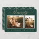 Rustikale Weihnachtskarte mit den Textsegnungen in subtilem goldfarbenem Glitzer und elegantem Drehbuch auf dunkelgrünem Hintergrund. Die Rückseite der Karte hat ein festliches Beeren-Gewirr-Muster. Fügen Sie einfach Ihren Namen und Ihre Lieblings-Fotos zu dieser schönen Weihnachtskarte hinzu und schicken Sie sie an Ihre Familie und Freunde! Exklusiv für Sie entworfen von Happy Dolphin Studio.