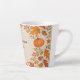 Herbstblätter, Beeren und Akkorde gerahmt von einem hellen Elfenbeinhintergrund für Ihren individuellen Hallenherbst und Ihren Namen auf einer latten Tasse. Rustikale, helle und gemütliche fallen latte Tasse für Ihre Küche oder Wohnzimmer. AI-unterstützte Kunstwerke. Ich kann eine kleine Provision von Affiliate-Links erhalten.