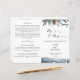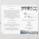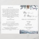Dieses elegante Hochzeitsdesign besticht durch eine bezaubernde Blütenanordnung auf der oberen Frontabdeckung und eine exquisite dustige blaue Berg-, Wald- und Fuchsszene am Boden. Verwendung handgeschriebener Typografie. Personalisieren Sie die Formulierung in beiden Seiten. HINWEIS: Diese Programme kommen flach an und müssen zur Montage in der Mitte heruntergeklappt werden. Das Standardwertpapier wird empfohlen.