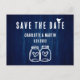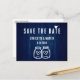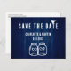 Minimalistische rustikale Hochzeit bewahrt die Dattelpostkarte mit moderner Kalligraphie, ideal für eine marineblau rustikale Hochzeitsfeier mit Land/Hinterhof/Scheune.