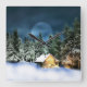 Rustikale Blockhütte Vollmond Quadratische Wanduhr