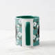 Hübsche rustikale Kaffee-Tasse mit einem Baumwolle Blume Muster über aquamarin mit Ihrem personalisierten Monogramm-Brief und Vorname in Skript.