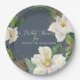 "Rustikales Blumenblätterdusty Navy White Watercolor Magnolia Brautparty Paper Plate." Lieblich für einen Frühling oder Sommer oder Herbst Brautparty. Leicht, luftig und elegant, wenn man mit den cremefarbenen, weißen Magnolienblüten über Zweige und Grün- und Braungrün vermischt wird. Kunst von international lizenzierten Künstler und Designer, Audrey Jeanne Roberts, Urheberrecht.