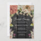 Elegante rustikale Bauernhausdusche mit wunderschöner Elfenbeincreme, Lilie, Rost, staubigen Rose-Blume und blühenden Rahmen mit natürlichem grünem Blattwerk auf einem dunkelbraunen Holzboden mit Lichtern. +++++++++++++++++++++ Einfach mit Ihren Daten anpassen. ++++++++++++++++ Geeignet für den Frühjahrsommer oder Herbst im Garten oder im Hinterhof Brautpartys.