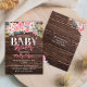 Feiern Sie die Mutter oder den Vater mit diesem schönen rustikalen Blumenmuster und Country chic Baby Dusche Design! Das Design ist in Rosa- und Korallenfloralen gehalten und mit einem rustikalen dunklen Holzboden versehen.