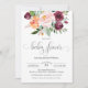 Die elegante Blumen-Babydusche mit rustikalem Charme und einer farbenfrohen Rose in den Farben Herbst oder Winter in Bordeaux, Rosettenorange und Rosa mit verstreuten Grünpflanzen. Ein skurriler Kalligrafietyp sieht Zauber aus dem Wort "Babydusche" in süßem Stil. Diese Einladung ist geschlechtsneutral und feiert die zukünftige Mutter, während sie sich darauf vorbereitet, ihr neues Baby willkommen zu heißen. Personalisieren Sie die Textvorlage mit den Details Ihrer Babydusche.