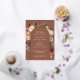 Elegante blumengeschmückte Hochzeitsfeiern oder Herbst- oder Winterhochzeiten zeigen Ihre Details, gerahmt von einem Bogen von Aquarellfarben, Mumm und Grün in rustikalen Herbstfarben wie Pfirsich, Elfenbein, Rot, Bordeaux und Grün, mit goldenen Folie in goldener Form auf einem Terracotta Rosthintergrund. Ein modernes und elegantes Design für rustikale, schicke Hochzeiten im Herbst oder Winter.