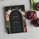Elegante blumengeschmückte Hochzeitsfeiern oder Herbst- oder Winterhochzeiten zeigen Ihre Details, die von einem Bogen von Aquarellfarben, Mumm und Grün gerahmt sind, in rustikalen Herbstfarben wie Pfirsich, Elfenbein, Rot, Bordeaux und Grün, mit goldenen Goldfolienbespannung und goldenen Kalligraphie-Schriftzeichen. Ein modernes und elegantes Design für rustikale, schicke Hochzeiten im Herbst oder Winter.