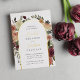 Elegante blumengeschmückte Hochzeitsfeiern oder Herbst- oder Winterhochzeiten zeigen Ihre Details, die von einem Bogen aus Aquarellfarben, Mumm und Grün in rustikalen Herbstfarben gerahmt sind, darunter Pfirsich, Elfenbein, Rot, Bordeaux und Grün, mit glänzender Goldfolie und goldkalligraphischem Schriftzeichen auf weißem Hintergrund. Ein modernes und elegantes Design für rustikale, schicke Hochzeiten im Herbst oder Winter.