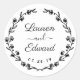 Maßgeschneiderte Hochzeitsaufkleber mit moderner Handkalligraphie und handgezeichnet Blumenkronendesign.