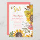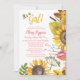Hübsche Sonnenblumen in Aquarellfarbe Babydusche Einladungen - Auf der Seite und unten mit rustikalem Land, Aquarell-Sonnenblumen, Blätter und Käfern in goldenen Gelb, Grüntöne, Orange, eine Touch von Rosa und Braun. Reads 'Es ist ein Mädchen!' in Braun und Gelb. Personalisiert mit dem Namen der Mutter in elegantem, korallenrosa Drehbuch mit Schatteneffekt. Einführung und Duschdetails in der Koordinierung rosa Text. Zurück hat koordinierende, feste Lachskorallen rosa Hintergrund. Verwenden Sie die Schaltfläche Anpassen Es, um alles zu ändern - Stile, Größen, Farben oder Platzierung von Schriftart. Elegantes Blumenduschbad-Party mit Babydusche lädt zu Frühlingsgärten, rustikalen Landstilen, Bohthemden, Sommer- oder Herbstduschen und gelben oder rosa Babyduschfarben ein. In unserem Zazzle.com/angela65* Shop verfügen wir über Party für Babydusche, Sonnenblumen und Dekoration.