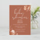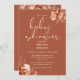 Eine elegante, stilvolle Babydusche mit eleganter Typografie und hübschem botanischem rustikalem Laub auf Terrakotta-Hintergrund. Entwickelt von Thisisnotme©