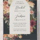 Eine wunderschöne Herbsthochzeit mit ihren Namen in Kalligraphie-Schriftzeichen, eingebettet in einen Bogen von Aquarellfarben-Blume und Botanicals in abgedämpften Erdtönen wie Bordeaux-Marsala, Rose, Elfenbein und Salbei-Grün. Personalisieren Sie Ihre Hochzeitsdetails unten. Die beiliegende RSVP-Karte und der Faltstil machen diese Einladung zu einer ansprechenden Wahl.