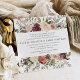 Unsere Rustic Bloom Hochzeitseinladung in einem einzigartigen quadratischen Format umrahmt Ihre Hochzeitsdetails mit einem oberen und unteren Rand von lackierten Aquarellfarben-Blume und Blattwerk in üppigen Herbsttönen wie Marsala, Bordeaux, Rose und Elfenbein. Eine rustikale und dennoch elegante Wahl für Herbst- und Winterhochzeiten.