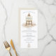 Rustikaler Stil für Ihre Hochzeit Frühstückstische. Boho Illustrationen von einer leichten mit der Überschrift Menu und eine Hochzeitskuchen am unteren Ende, mit stylisch vereinfachenden Typografie. Der Text ist leicht auf Ihre eigenen Details personalisiert und Sie können den Schriftart-Stil und die Farbe sowie die Hintergrundfarben auf der Vorder- und Rückseite ändern, wenn Sie über die Option Klicken Sie auf Weitere Einstellungen anpassen möchten.