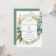 Dramatisch aquamarines botanisches Blattwerk und eine Aquarellwäsche schaffen einen modernen Rahmen. Goldene Blätter und Filialen verleihen der Hochzeitseinladung ein elegantes luxuriöses Ambiente. Zusammen schaffen sie kühn rustikales Boho Chic Blumendesign. Ein goldener Ampersand bringt das Design in den Text.