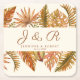 Stilvoller quadratischer Untersetzer mit rustikalen Herbstlauben und Paarinitialen in erdigen Farbtönen. Eine wunderschöne Touch für Herbsthochzeiten, perfekt abgestimmt auf das rustikale Veranstaltungsthema.