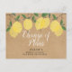 Diese stilvolle rustikale boho lemons Wechsel der Dattelkarte kann mit Ihrer Aufschiebungsinformation personalisiert werden. Auf der Rückseite finden Sie weitere Informationen, einschließlich Ihrer Website, mit Ihrer Rücksendeadresse und Platz für die Adresse Ihres Empfängers. Ideal für Hochzeiten, Brautpartys, Babyduschen, Taufen, Verlobungsfeiern, Jubiläumsfeiern, Abschlüsse, Geburtstagsfeiern und andere besondere Veranstaltungen das ganze Jahr über! Entwickelt von Thisisnotme©