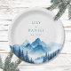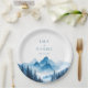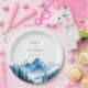 Rustikale Boho Wasserfarbe Blaue Berge Hochzeit Pappteller