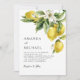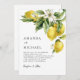 Mit diesem einzigartig schönen, mediterranen Hochzeitsinspektionsdesign erleben Sie Ihre traumhafte Hochzeitsvision zum Leben. Es verfügt über eine lebendige Ecke mit frischen Aquarelllemonen in Zitrusgelb und Grün mit weißen Blüten. Es ist eine schöne Wahl für Hochzeiten im Frühling, Sommer oder Herbst. Ob Sie im Mittelmeer, an der Amalfiküste, Positano, in der Toskana oder in einem sonnigen südkalifornischen Zitrushain oder einem anderen Ziel Ihre Hochzeit verbringen möchten, dieses charmante Design ist eine erfrischende Wahl für Ihre Traumhochzeit. Dieses beliebte All-in-One-Design hat Details auf der Rückseite der Einladung, die Ihre Hochzeitswebsite QR-Code enthalten. Der QR-Code Ihrer Hochzeitswebsite auf der Rückseite der Einladung macht es Ihren Gästen leicht, ihre RSVPs zu senden und wichtige Details über Ihren Hochzeitstag zu finden und ist eine kostengünstige Möglichkeit, Papier und Kosten retten. Das Design ist schlicht und elegant, mit einem minimalistischen Look, der durch die sonnige Zitronenfrucht angeregt wird.