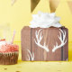 Rustikales Wald-Umhüllungspapier mit weißem Hirsch ein Antlermuster. Der Hintergrund ist ein dunkles, ländliches Holzplanks-Design.