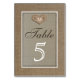 Rustikale Burlap-Hochzeitkarten für Tischnummern