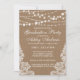 Einladungskarte für Rustikal-Burlap-, String-Lights und Lace Graduation Party