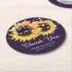 Rustikale Burlap-Lila Sonnenblumenhochzeit Runder Pappuntersetzer