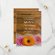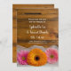 Set den Ton für Ihre bevorstehende informelle und dennoch elegante Ehefeier mit der charmanten Rustikalen Daisy Trio Country Barn Wedding Save the Date Announcements. Diese lässige und klassische, maßgeschneiderte Farm- oder Ranch-Themenehe behalte die Ankündigung des Datums mit einem malerischen Blumenfoto von zwei rosa Gänseblüten und einer orangefarbenen Blüte mit weißem Brautschleier und rustikalem, verwittertem Braunholz. Perfekte Inspiration für Ihre Stallheirat Party Ehe Zeremonie und Empfang Thema.