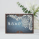 Diese RSVP-Hochzeitskarte ist mit einem Lederhintergrund versehen, der mit blauem Denim und einem zarten Elfenbeingrafikdesign überragt ist. Modern und elegant. Einfach angepasst. ::ENVELOPES EINSCHLIESSLICH