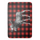 Groß für ein rustikales männliches Badezimmerthema. Diese Badmatte hat ein kariertes Muster des roten und schwarzen Büffels und eine mutige Elchschwarzweiss-illustration.