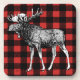 Bemannen Sie Höhlenelch-Untersetzer mit einem roten und schwarzen karierten Muster.