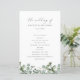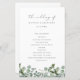 Vervollständigen Sie Ihre Hochzeitsfeier mit einem schönen Zeremonieprogramm mit Aquarelleukalyptus und weicher grauer Typografie. Passen Sie die Rückseite an, um die Mitglieder Ihrer Hochzeitsfeier aufzulisten.