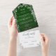Alle in einer Hochzeitseinladung mit einer schönen Blumenkaskade und eleganten Typografien und Monogramm-Initialen auf einem rustikalen smaragdgrünen Stallholzpaneelenboden. Die Einladung enthält eine perforierte RSVP-Karte, die für Sie individuell adressiert oder links als leere Adresse für die Handschrift der Adressdaten Ihres Gastes verwendet werden kann. Entwickelt von Thisisnotme©
