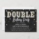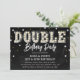 Feiern Sie stilvoll mit dieser rustikalen Erwachsenen-Doppel-Geburtstagsfeier Einladung. Das Design verfügt über eine Tafel schwarz Boden, Glühbirnen Nummer Buchstaben und Konfetti. Die bearbeitbare Vorlage lässt sich mit der bereitgestellten Vorlage leicht anpassen.