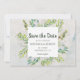 Teilen Sie Ihre guten Neuigkeiten mit Freunden und Familie, wenn Sie diese hübschen Save the Date Hochzeitsankündigungen aussenden, die mit einem Umschlag versehen sind. Ein sanfter Aquarellhintergrund in neutraler Farbe ergänzt einen erdigen geometrischen Rahmen, der mit wunderschönen Sukkulenten und Aquarellgrün in hübschen Blau- und Grüntönen gefüllt ist. In dieser eleganten Hochzeitskollektion mischen und mit anderen Hochzeitszubehör abstimmen.