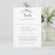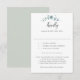 Entspannen Sie mit unserer eleganten RSVP-Karte, die zeitgenössischen Charme und natürliche Grazie kombiniert. Ganz oben steht das Wort "Kindly" in einem modernen Drehbuch, das einen Ton warmer, einladender Eleganz angibt. Ergänzt wird das Ganze durch ein zartes Eukalyptus-Aquarellmotiv, das eine Touch ruhiger Vegetation hinzufügt, die die Ruhe der Natur widerspiegelt. Die RSVP-Karte beinhaltet sorgfältig die Einstiegsmöglichkeiten, die es Ihren Gästen erleichtern, ihr kulinarisches Erlebnis zu personalisieren. Diese Karte ist nicht nur ein einfaches Instrument, sondern eine geschmackvolle Erweiterung Ihres Hochzeitsthemas, ideal für Paare, die eine Feier planen, die moderne Eleganz mit der zeitlosen Schönheit der Natur in Einklang bringt.