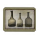 Rustikale, stille Lebenskunst mit 3 antiken Flaschen in gedämpften Tönen grün und braun.
