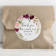 Dieses rustikale florale botanische Dankeschön an die Gastgeschenk Hochzeit klassischen Rundaufkleber ist perfekt für eine moderne Hochzeit. Das Design besticht durch hübsche und farbenfrohe handgezeichnet Blume und ein hübsches Laub. Machen Sie den Aufkleber mit Ihren eigenen Namen, der Veranstaltung (falls zutreffend) und dem Datum versehen. Diese Aufkleber können einen Hochzeitsempfang, Brautparty oder jede Veranstaltung ergänzen!