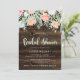 Diese rustikale Brautdusche mit trendigen Brautduschen ist mit Aquarellfarben-Blume und Blätter in sanften Rosa-, Pfirsich-, Weiß- und Blautönen gestaltet, mit einem modernen Akzent an Goldsteinen aus Imitat auf braunem Holzhintergrund.