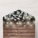 Eine rustikale Hochzeitseinladung mit hübschem, grünem Wasser, Saitenbeleuchtung, Maurerkirschen und eleganter moderner Typografie auf Holzpaneelenboden. Die Einladung enthält eine perforierte RSVP-Karte, die für Sie individuell adressiert oder links als leere Karte für die Handschrift der Adressdaten Ihres Gastes verwendet werden kann. Entwickelt von Thisisnotme©