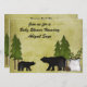 Rustikale Gebirgsbärendusche Einladung für Jungen, Mädchen und neutrale Babyduschen mit grünem Hintergrund.