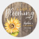 Rustikale und ländliche Babydusche bevorzugen Aufkleber mit Sonnenblumen Aquarellbild auf einem hölzernen Hintergrund. Passen Sie dieses Produkt an, indem Sie den Namen des zu verwendenden Mommy-to-be-Produkts hinzufügen. Elegantes Sommer Baby Duschdesign für Mädchen und Jungen.
