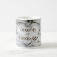 Ein Birkenbaum mit einem Herzen schnitzte in ihn. Personifizieren Sie diese Tasse mit zwei Namen und einem Datum.